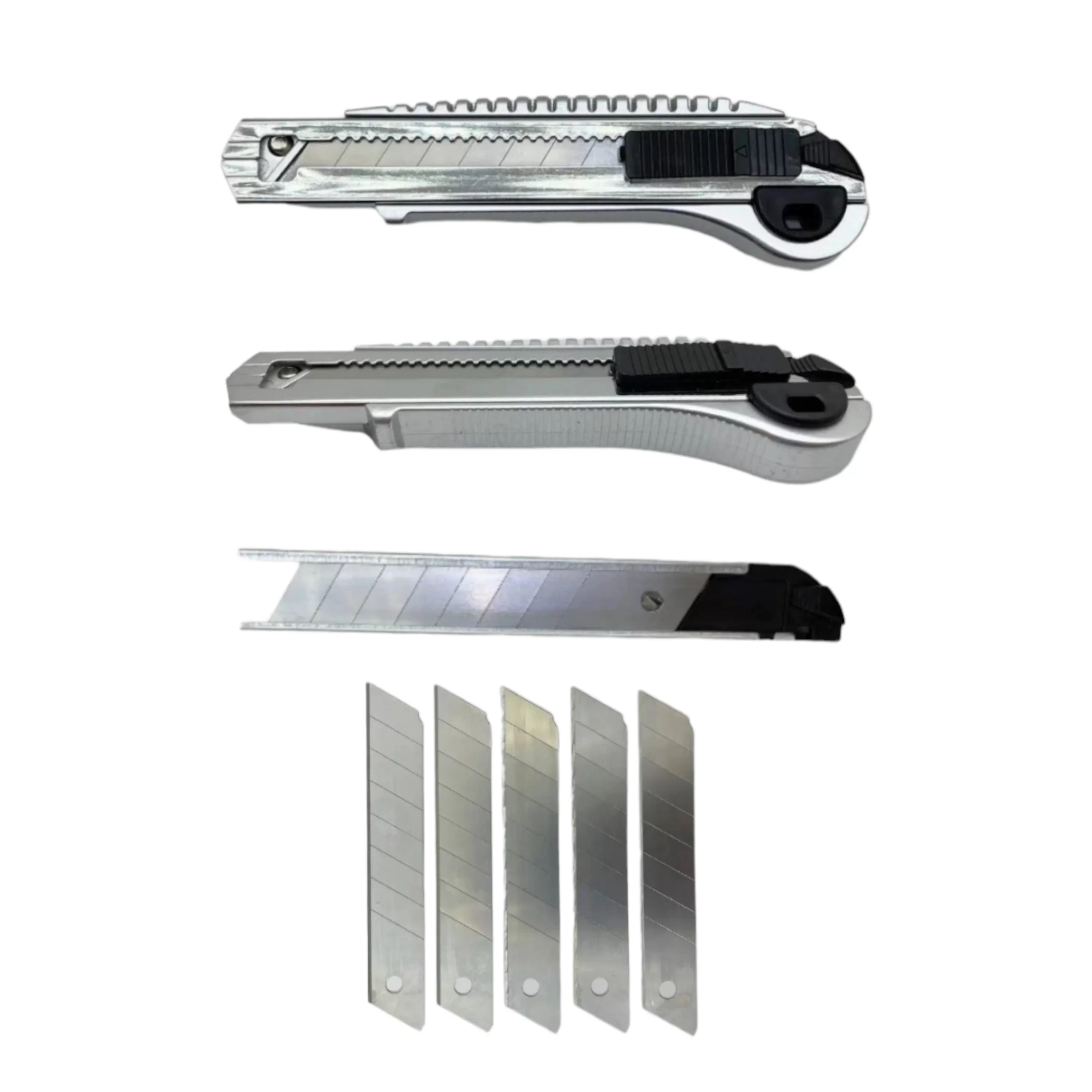 Легкий пластиковый корпус с металлическими направляющими надежно удерживает остро отточенное лезвие стандартной ширины 18 мм. По мере использования отработанные концы лезвия просто отламываются. Ребристые края ручки предотвращают скольжение пальцев и исключают их травмирование.